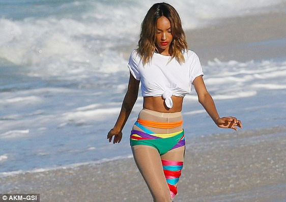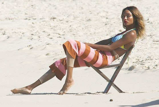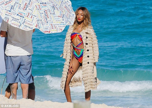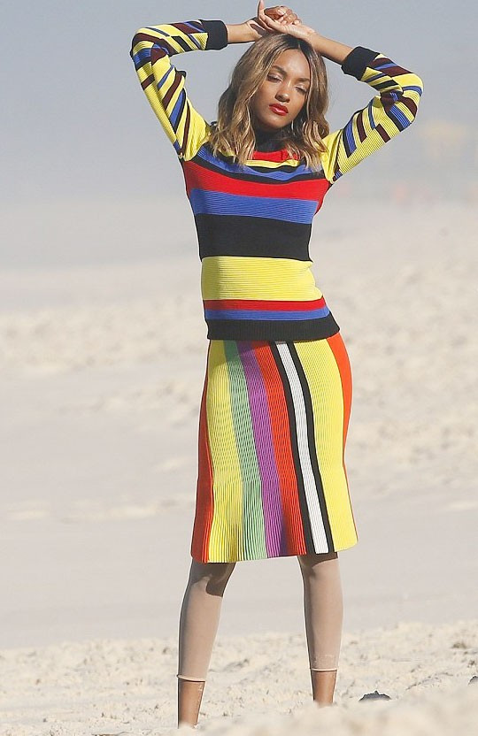 Trong bộ ảnh mới thực hiện cho Vogue, chân dài 25 tuổi lại có dịp phô diễn những đường cong nóng bỏng trước ống kính. Diện trang phục phong cách bảy sắc cầu vồng rực rỡ, Jourdan Dunn táo bạo chụp ảnh ngực trần.