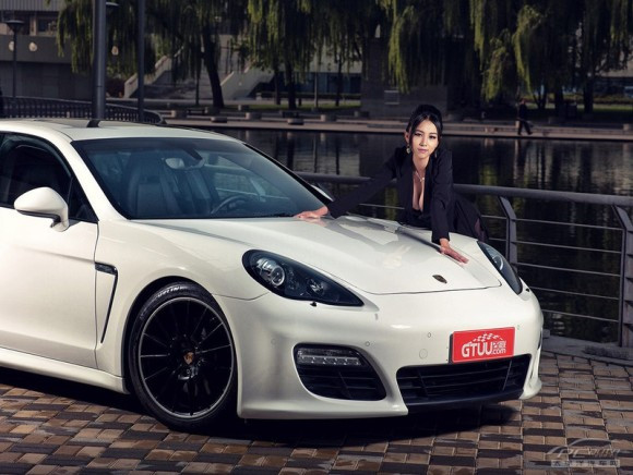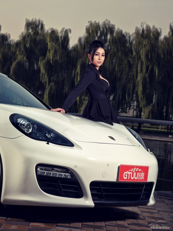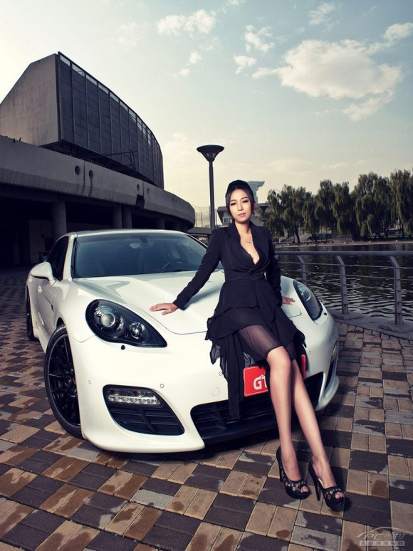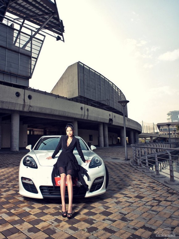 TPO – Chiếc Porsche Panamera màu trắng sang trọng và lịch lãm bên cạnh cô người mẫu với đôi chân dài và bộ đầm đặc biệt khoe được những đường cong gợi cảm nhất.