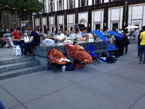 Đám đông đến sớm, ăn ngủ nằm chờ như một ngày hội, chờ đợi được sở hữu những sản phẩm đầu tiên của Apple.