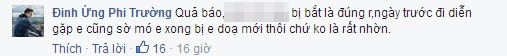 Ca sĩ Đinh Ứng Phi Trường nói: "Quả báo, bị bắt là đúng rồi. Ngày trước đi diễn gặp em cũng sờ mó em xong bị em dọa mới thôi chứ không là rất nhờn".