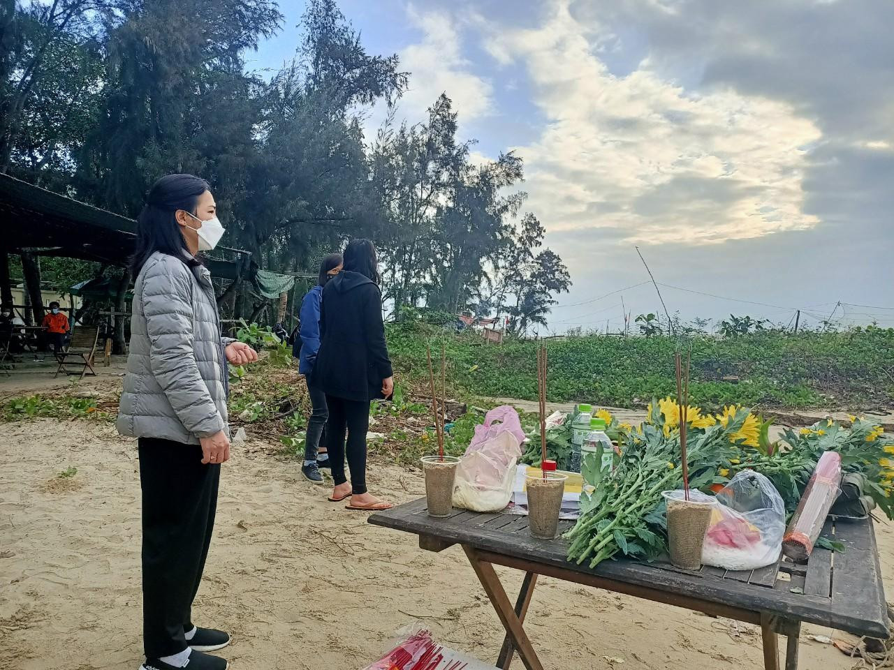 Hai nạn nhân chưa được tìm thấy là N. M. Q. và N. M. A (cùng SN 2019, Hà Nội). Sáng nay người nhà của hai em đến bãi cát Cửa Đại cách khu vực xảy ra vụ lật ca nô khoảng 2 hải lý, lập bàn thờ mong sớm tìm thấy cháu.