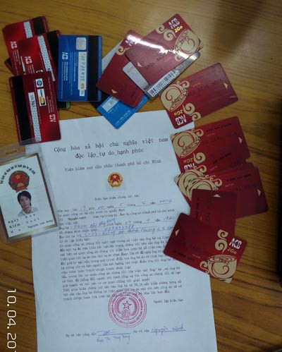 Cảnh sát thu giữ một thẻ được cho là của cán bộ VKSND TP HCM có dán hình, Biên bản kiểm chứng tài sản… nhưng đều sai quy cách và nhiều lỗi chính tả. Tại cơ quan công an, Yang Ti An thừa nhận tham gia đường dây lừa đảo qua điện thoại do người tên A Xương cầm đầu.