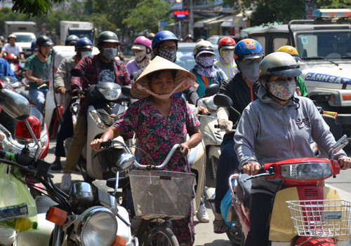 Giao thông qua khu vực bị ùn ứ nhẹ. Ảnh: Sơn Hòa