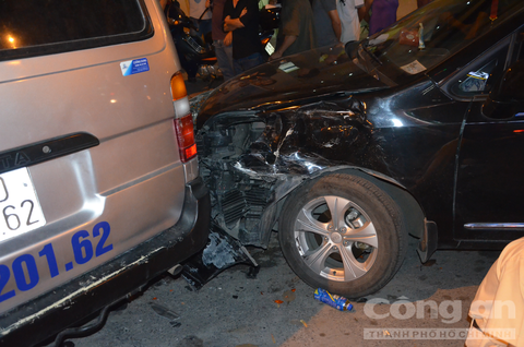 Sau đó, chiếc xe lao sang làn đường bên kia tông vào đầu xe ô tô BKS: 51F – 297.03 đang đậu trên đường Trần Phú, hướng về đường An Dương Vương.
