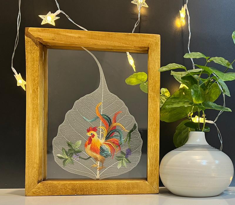 Nói về lý do chọn lá bồ đề làm chất liệu để thêu tranh 3D, chị Cúc chia sẻ: “Mình chọn lá bồ đề vì độ bền cũng như hình dáng bắt mắt của lá. Chiếc lá bồ đề còn chứa đựng ý nghĩa lớn, mang giá trị cuộc sống. Mình muốn thổi hồn, hồi sinh cho lá, mong lá sống lại với một hình ảnh mới mẻ hơn".
