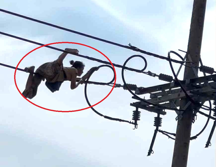 | Clip: Người phụ nữ bò trên dây điện hạ thế |
