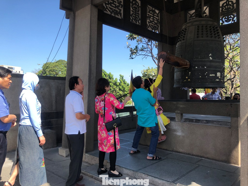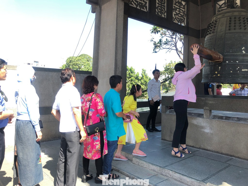 Rất đông người xếp hàng dài chờ đánh chuông.