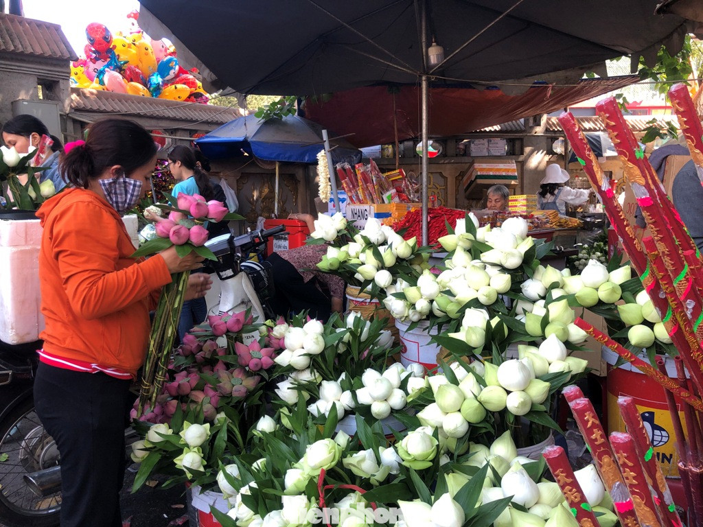 Giá mỗi bó sen từ 70.000-80.000 đồng (7 bông), còn mua từng bông thì giá 20.000 đồng.