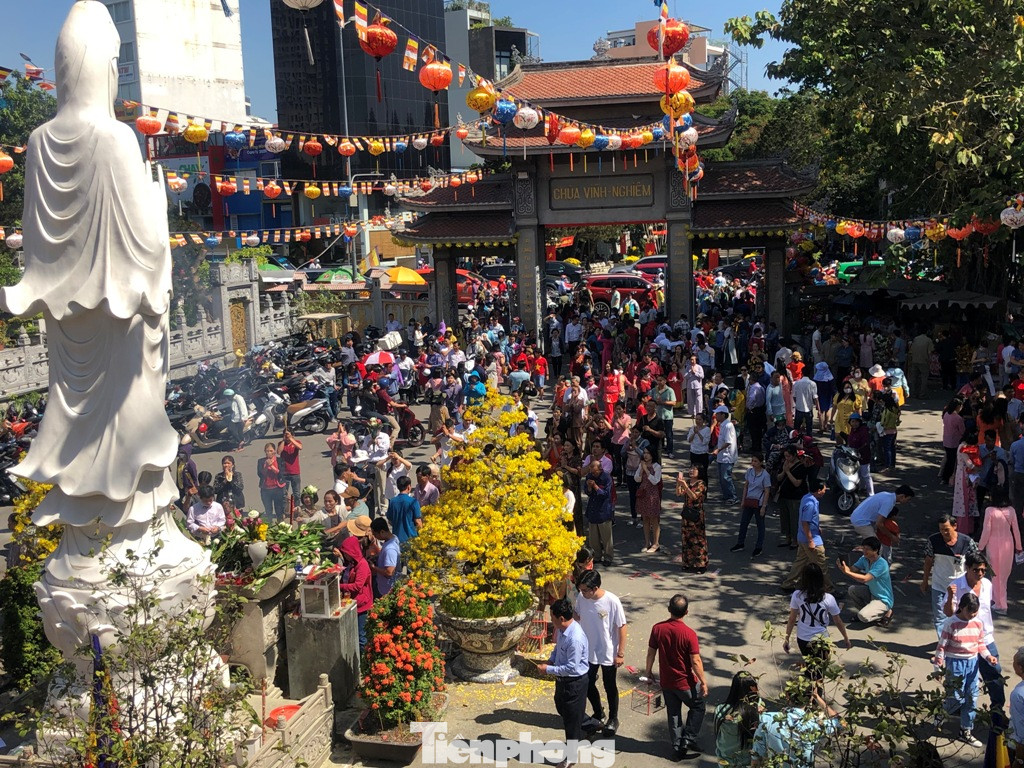 Tại các ngôi chùa như Vĩnh Nghiêm (Q.3), Ngọc Hoàng (Q.1), Ấn Quang (Q.10)... rất đông người từ các nơi đến thắp nhang, phóng sinh để cầu may mắn đầu năm.