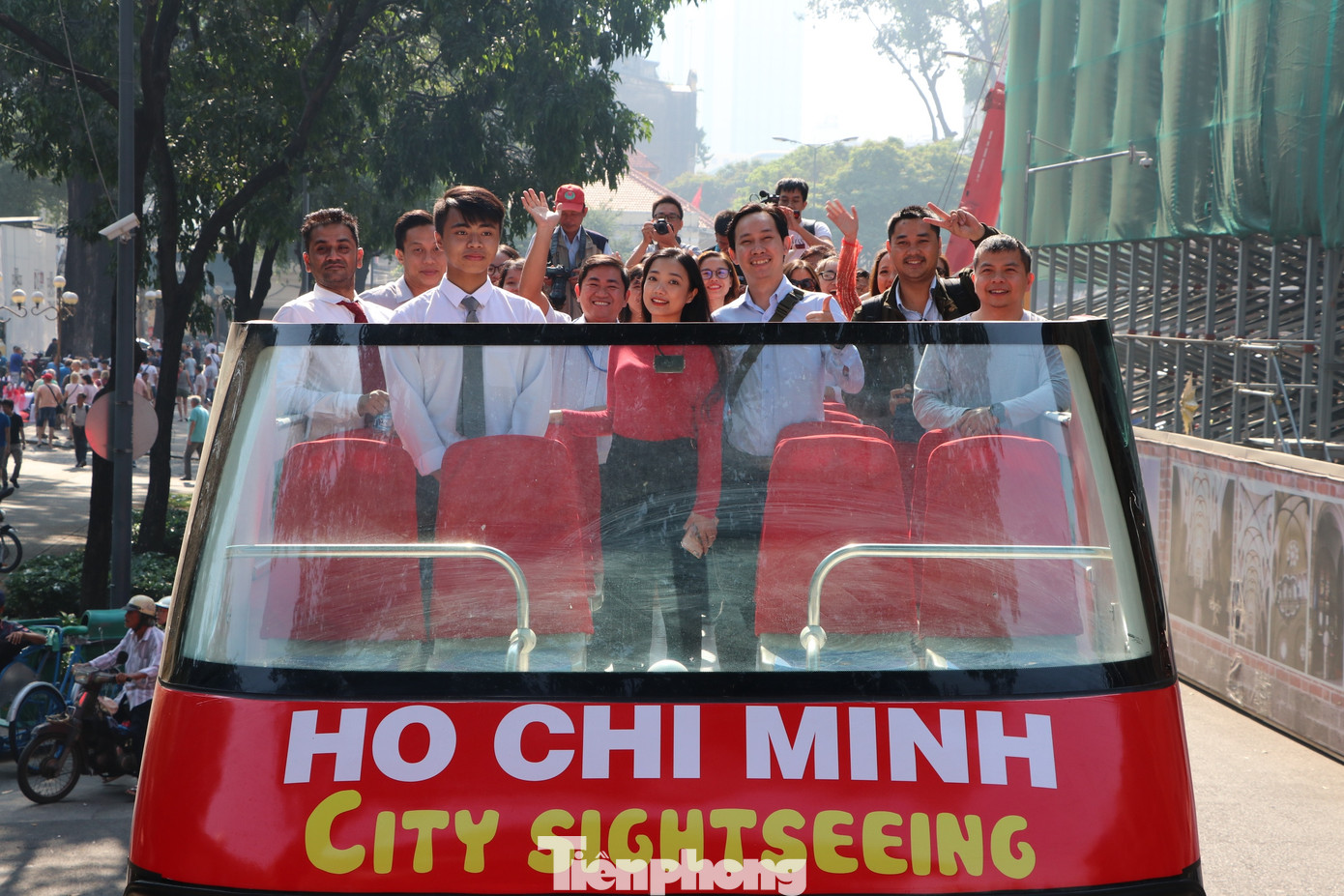 Từ trên xe, du khách có thể tham quan các điểm du lịch nổi tiếng của TPHCM.