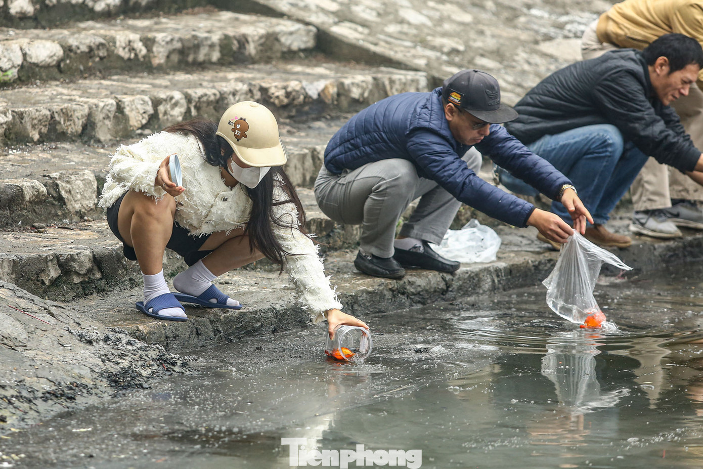 | Ghi nhận của PV, tại hồ Hoàng Cầu (quận Đống Đa, Hà Nội) vào sáng nay (2/2), rất nhiều người dân ra đây để thả cá chép trong ngày ông Táo chầu trời. |