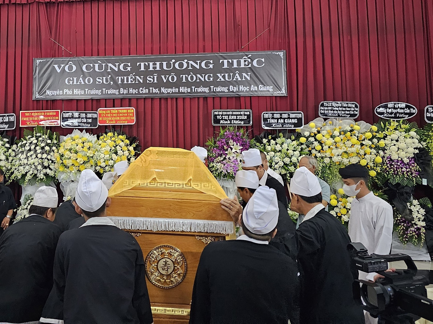 TPO - Khoảng 20h tối 19/8, linh cữu Giáo sư Võ Tòng Xuân từ TPHCM về đến Nhà tang lễ Câu lạc bộ hưu trí TP. Cần Thơ (quận Ninh Kiều). Tại nhà tang lễ, rất đông người thân, học trò, người dân có mặt để tiễn biệt người thầy, nhà khoa học đáng kính, suốt đời cống hiến cho nền nông nghiệp và lúa gạo Việt Nam.