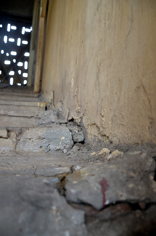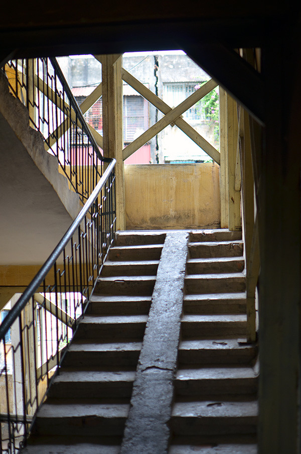 Các vết nứt chạy dọc theo hai bên cầu thang.