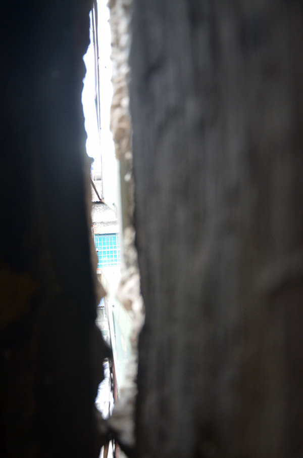 Những vết nứt lớn tại khu vực cầu thang trên tầng 4 và tầng 5 của ngôi nhà rộng trên 5cm và có thể nhìn xuyên qua bên ngoài.