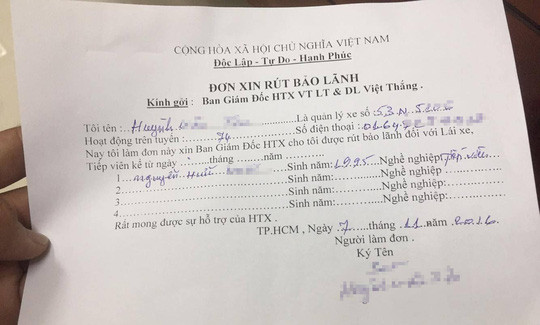 Cụ thể, một cán bộ thuộc Phòng kế hoạch – điều hành của HTX Việt Thắng đã yêu cầu ông Huỳnh Văn Sên (chủ xe buýt đứng ra bảo lãnh H.) đến văn phòng làm giấy cho H. nghỉ công tác. Khi ông Sên hỏi lý do, vị cán bộ cho biết H. là “người có tính cách không tốt nên cho nghỉ làm”.