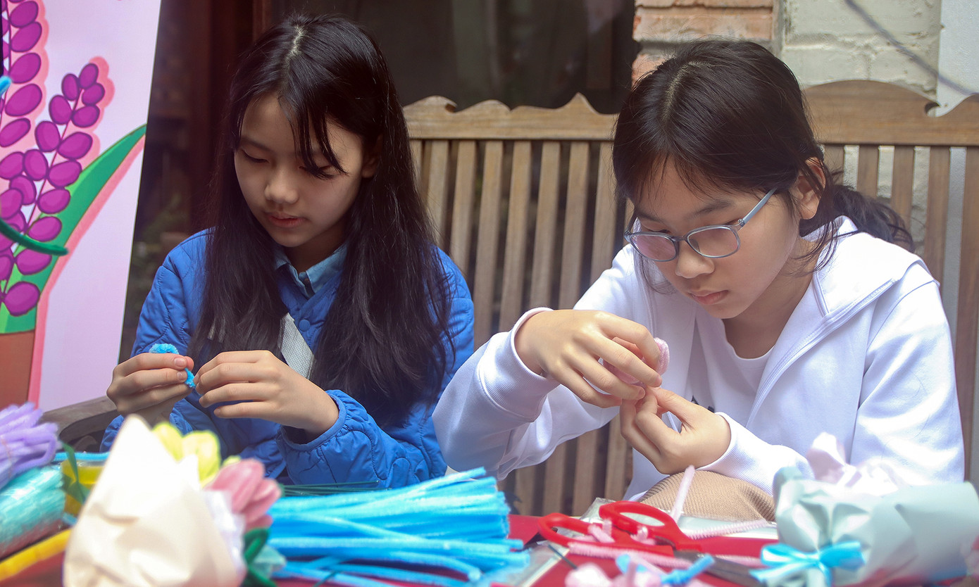 | Các bạn trẻ trải nghiệm làm tranh dân gian Đông Hồ. Ảnh: BTC |