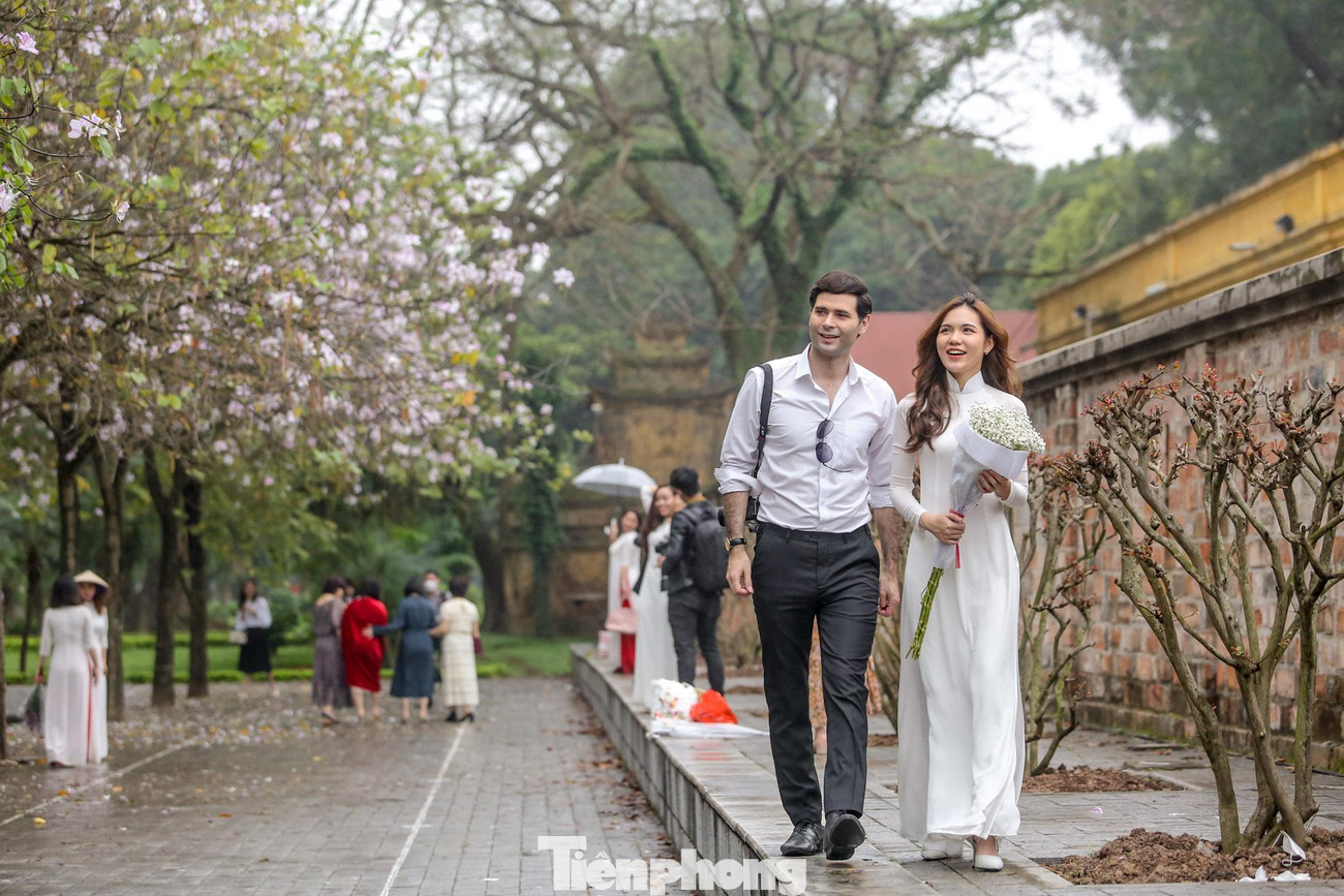| Đây cũng là dịp người dân Thủ đô tranh thủ "lên đồ", đến hàng hoa này check-in, chụp ảnh khiến con phố tấp nập, nhộn nhịp. |