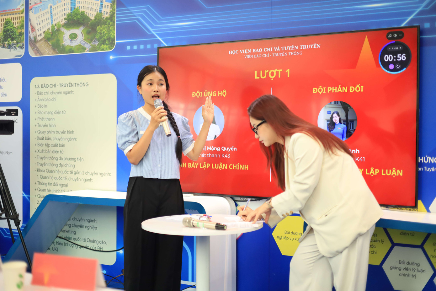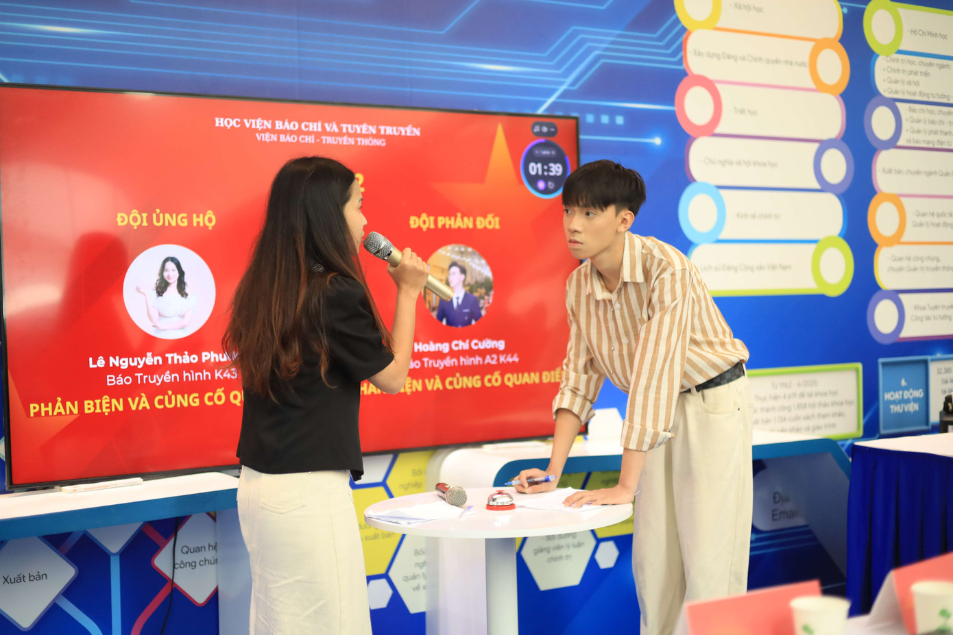 Một trong những điểm nhấn ấn tượng tại Hội Báo năm nay là cuộc thi Hùng biện và Tranh biện chủ đề “Tự hào báo chí cách mạng Việt Nam” do Học viện Báo chí và Tuyên truyền tổ chức. Đây là hoạt động hướng đến sinh viên Viện Báo chí – Truyền thông, nhằm bồi dưỡng tư duy phản biện, kỹ năng diễn đạt, lập luận và bản lĩnh thuyết phục công chúng.