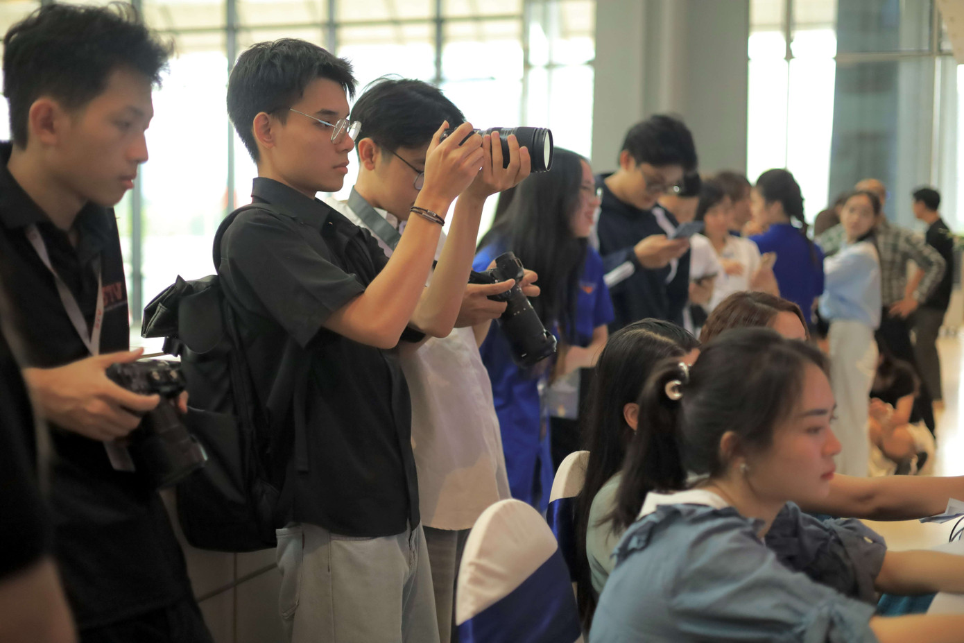 Nổi bật giữa dòng người tấp nập là sự xuất hiện rộn ràng của những gương mặt sinh viên trẻ, chủ yếu đến từ các trường đại học có ngành báo chí, truyền thông. Mỗi người một chiếc máy ảnh, quyển sổ tay, ánh mắt tràn đầy nhiệt huyết và tò mò.