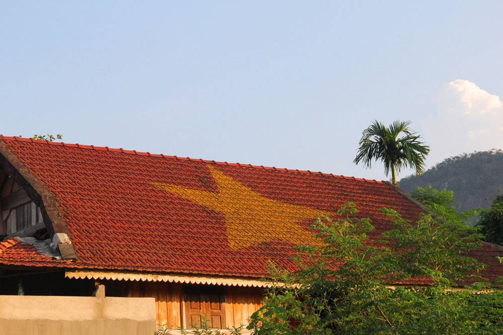 | Ngôi sao vàng 5 cánh được vẽ trên mái nhà do Lê Quang Vũ thực hiện ở huyện Tam Dương, tỉnh Vĩnh Phúc. (Ảnh: Lê Quang Vũ) |