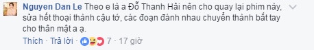 Diễn viên Đan Lê, người đóng vai vợ của Phan Hải (Việt Anh) trong phim cũng nêu lên ý kiến của mình: "Theo em là anh Đỗ Thanh Hải nên cho quay lại phim này, sửa hết thoại thành cậu tớ, các đoạn đánh nhau chuyển thành bắt tay cho thân mật".
