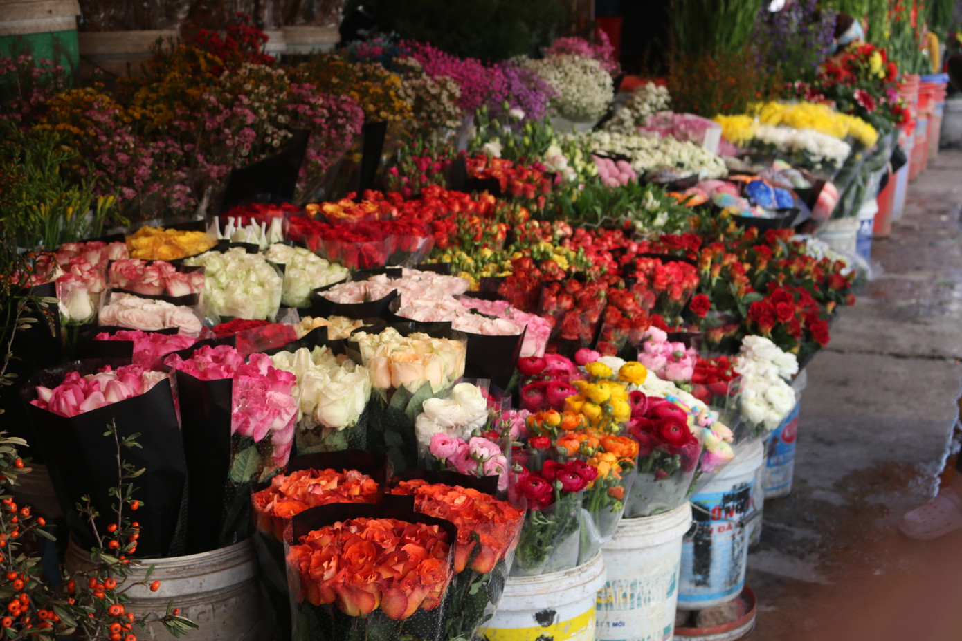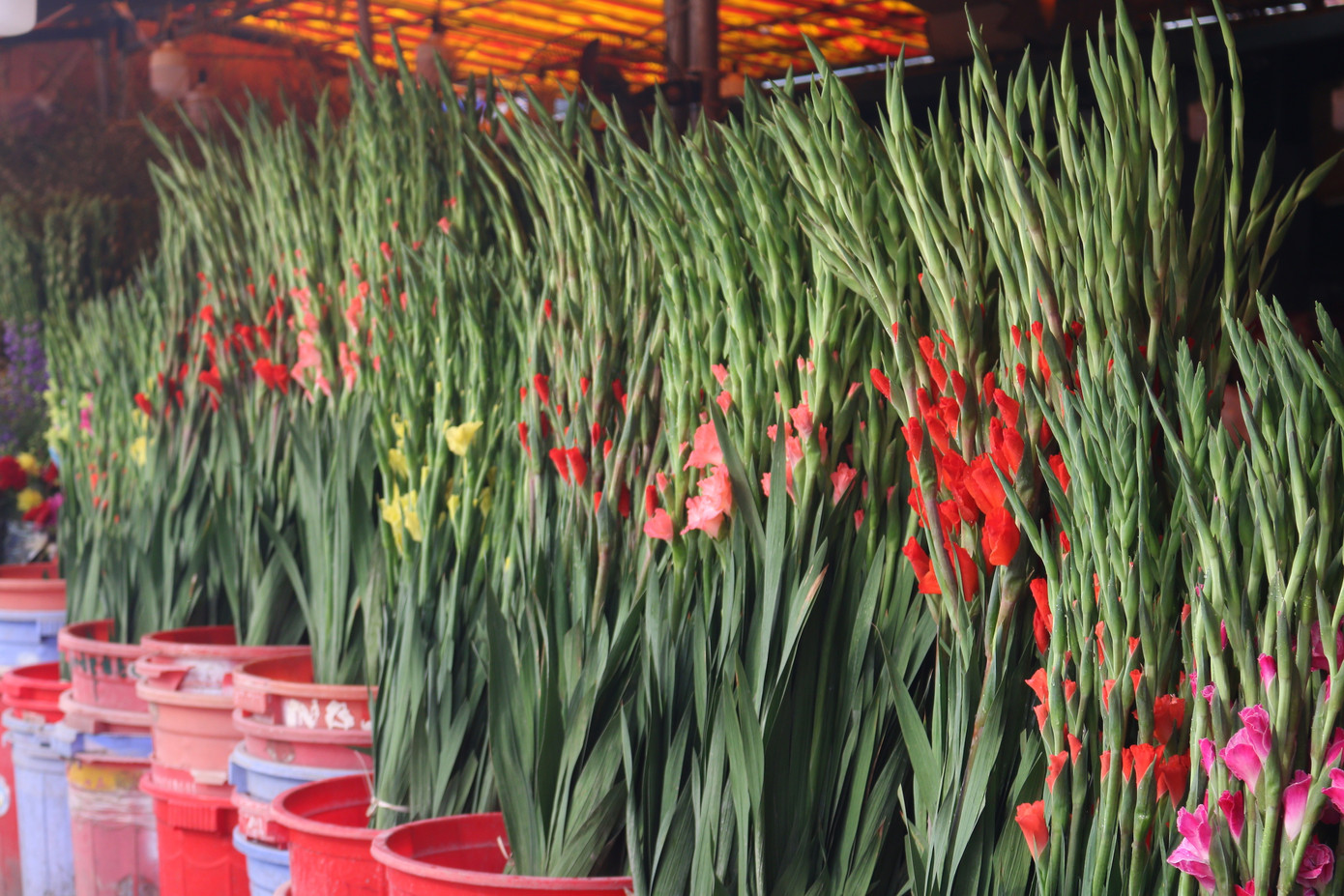 Giá tương đối ổn định, theo nhận định của người mua, bán. Lay-ơn đủ màu khoe sắc, chờ khách mua. Hoa cắm trong nước để giữ được tươi lâu. Tiểu thương cho biết, hàng nhập về chợ cầm chừng hơn so với cùng thời điểm này năm ngoái. Lay-ơn được cung cấp từ các vườn Tây Tựu, hoặc vận chuyện từ Đà Lạt