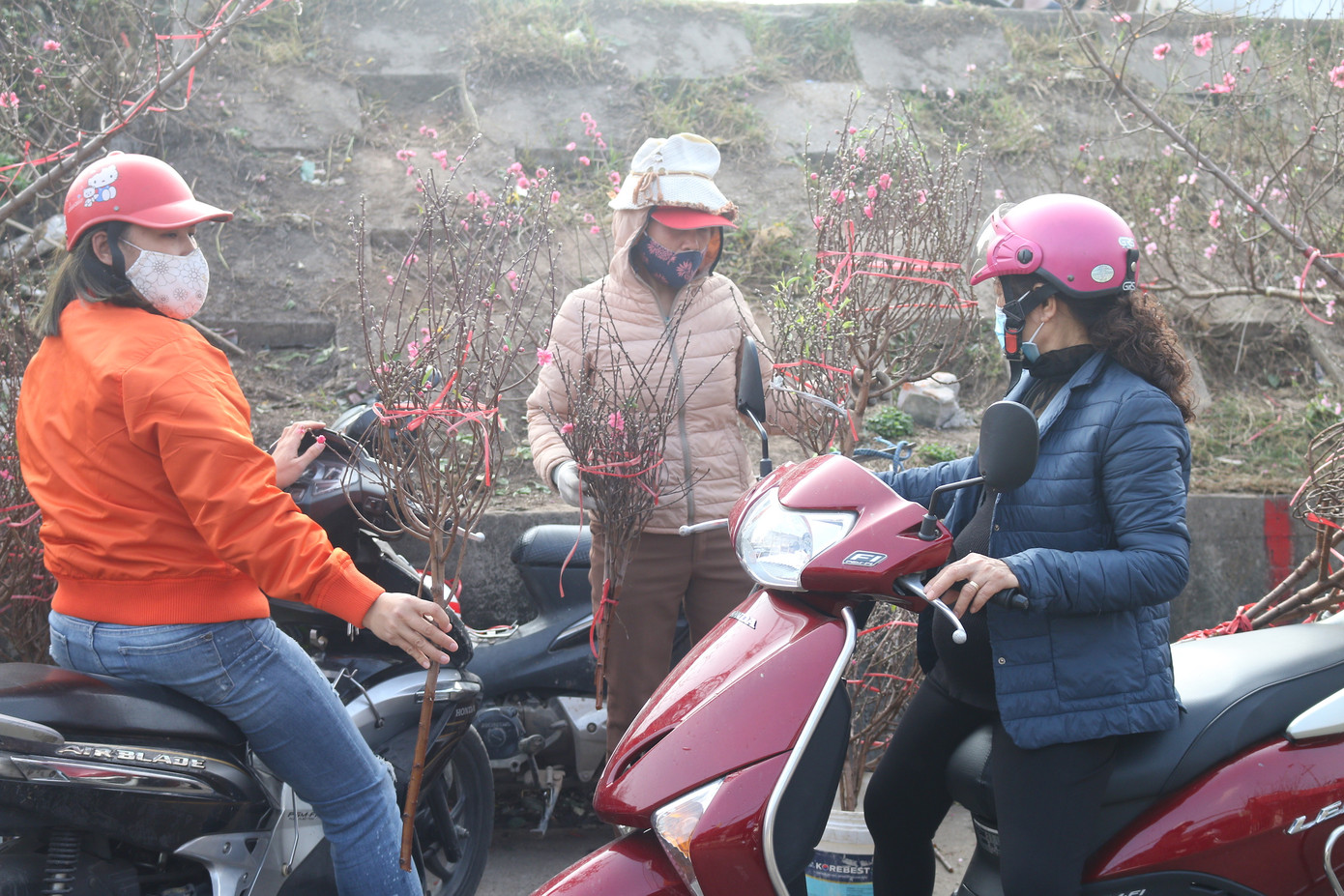 Theo các tiểu thương tại chợ, lượng lái buôn mua hàng và số hoa tiêu thụ hiện thấp hơn rằm tháng Chạp, chợ vắng hơn sau thông tin những ca bệnh COVID-19. Ban ngày, khách vãng lai lựa hoa cũng thưa thớt. Chỉ có hàng bán đào có phần nhộn nhịp hơn. Cả người mua lẫn người bán cẩn trọng đeo khẩu trang phòng dịch