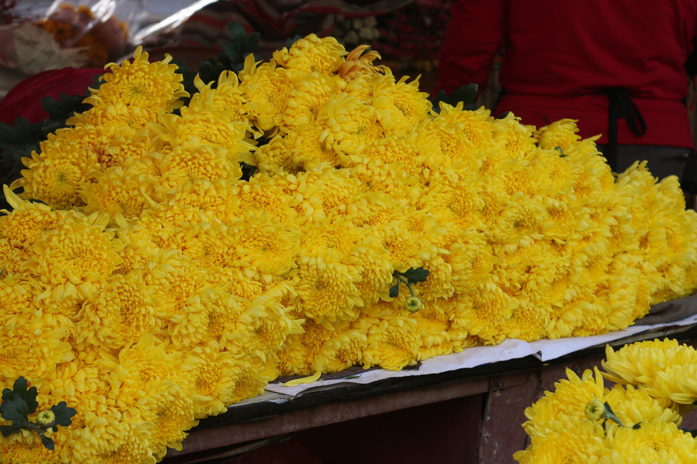 Đắt hàng những ngày sát ông Công ông Táo, hoa cúc vàng được tiểu thương nhập sẵn lượng lớn. Giá bán lẻ tại các chợ 30.000 – 40.000 đồng/ chục