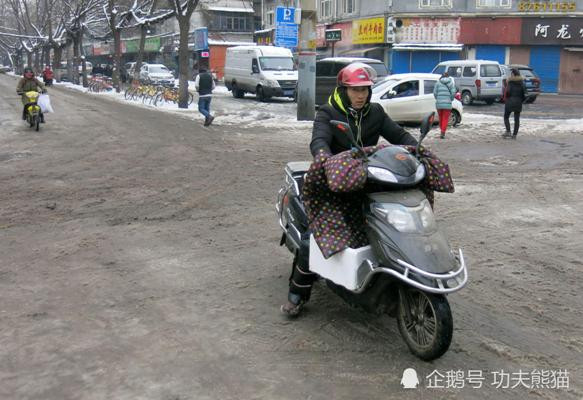 Người dân Hoài An, Giang Tô, mang theo “chăn” ra đường vì quá lạnh. Ảnh: QQ