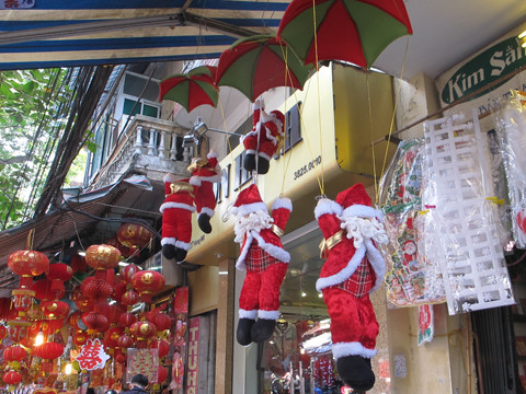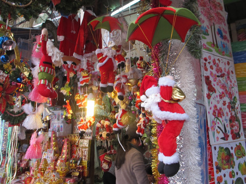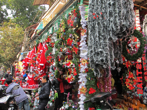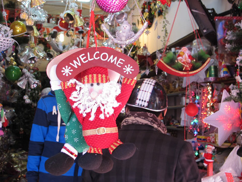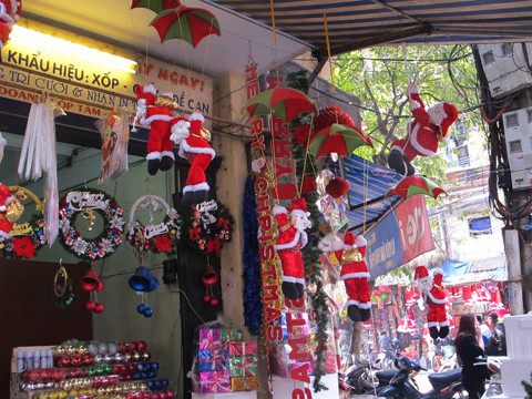 Tất cả các gian hàng ở Hàng Mã đều bán mặt hàng phục vụ cho mùa lễ giáng sinh