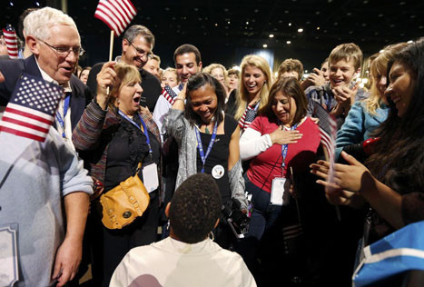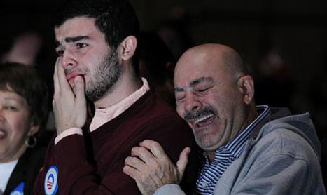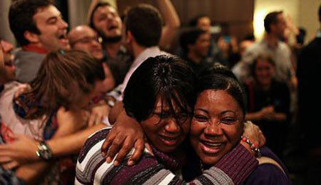 Khắp nước Mỹ, hàng triệu người ủng hộ Tổng thống Obama đã có những phút giây thực sự đặc biệt trong khoảnh khắc truyền thông Mỹ thông báo về chiến thắng của ông Obama trước đối thủ Romney. Nhiều người trong số họ đã oà khóc...