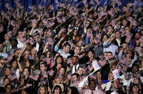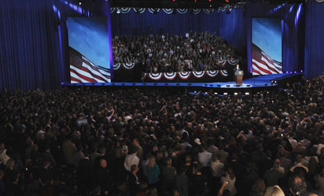 Toàn cảnh buổi lễ ăn mừng chiến thắng của ông Obama.