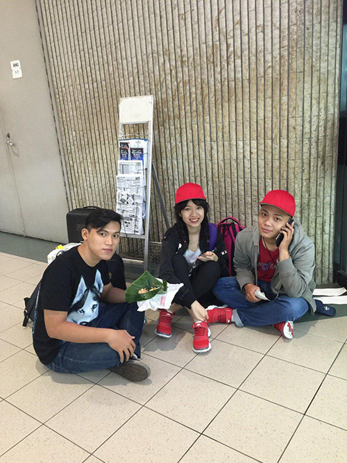 Anh Tăng Thiên Hải, người từ TP HCM bay sang Singapore để đợi mua iPhone 7, chia sẻ, do các cửa hàng chưa cho phép xếp hàng nên nhiều nhóm người phải tụ tập ở bên ngoài, tự thoả thuận và ghi nhớ chỗ với nhau. Tuy nhiên, nếu giống 6s năm ngoái, tối nay có thể thêm đông người xếp hàng qua đêm. Ảnh: Văn Thắng.
