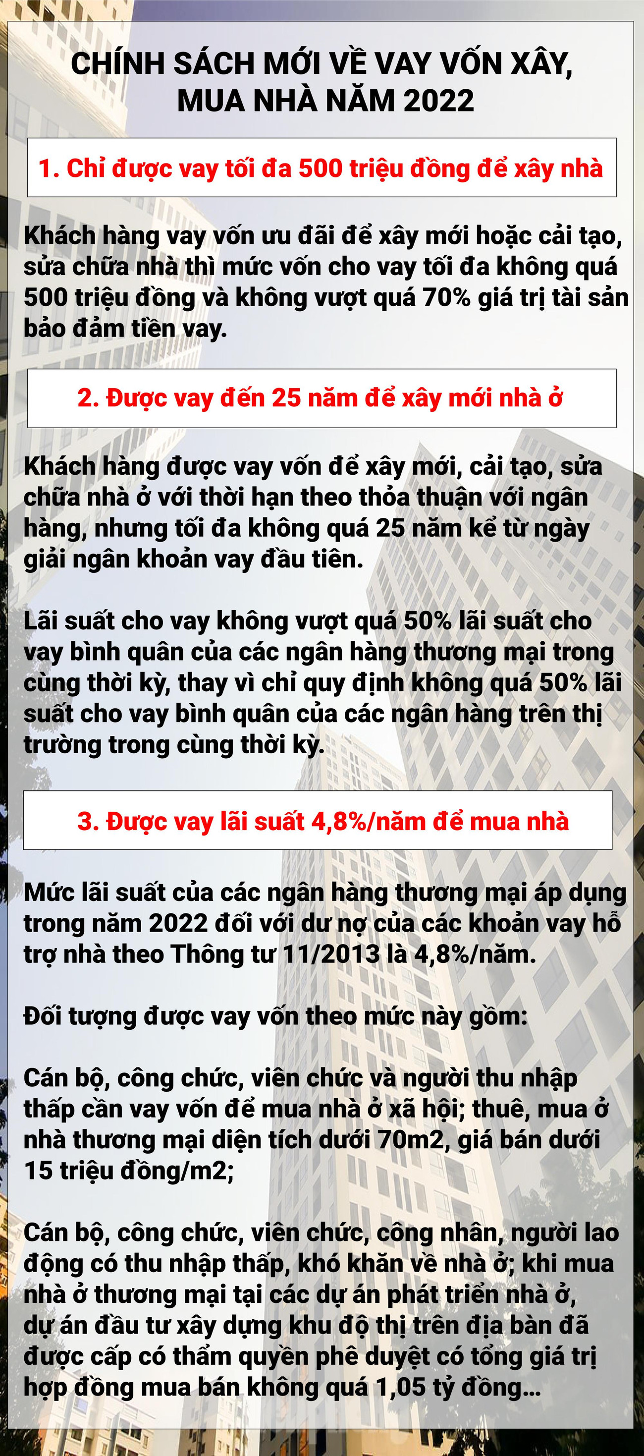 TPO - Từ ngày 20/01/2022, Thông tư 20/2021/TT-NHNN và Quyết định 1956/QĐ-NHNN (Ngân hàng Nhà nước) chính thức có hiệu lực, trong đó có nhiều thay đổi về chính sách xây dựng nhà mới và mua nhà nên người dân cần hết sức lưu ý để đảm bảo quyền lợi của bản thân.