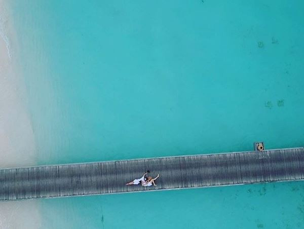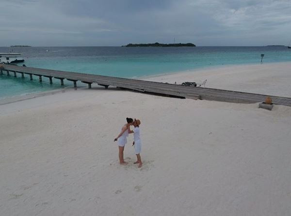 Hai người thường xuyên đăng ảnh tình tứ, thậm chí cả ảnh đứng hôn nhau trên bãi biển đầy lãng mạn được chụp từ trên cao, làm dấy lên tin đồn họ đến Maldives để chụp ảnh cưới.