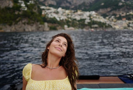 Bạn gái tài tử Titanic có làn da rám nắng với ba vòng cực quyến rũ.