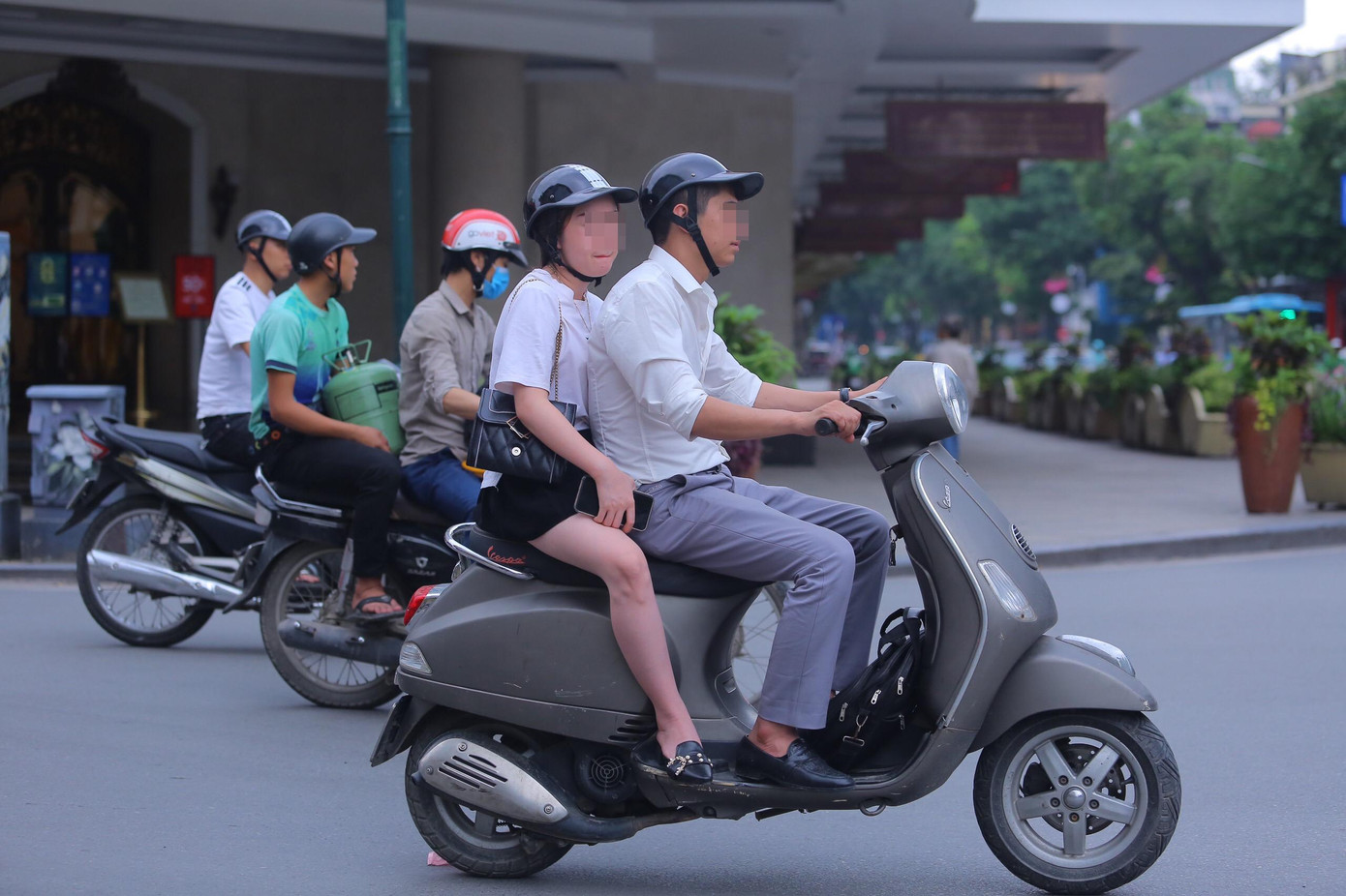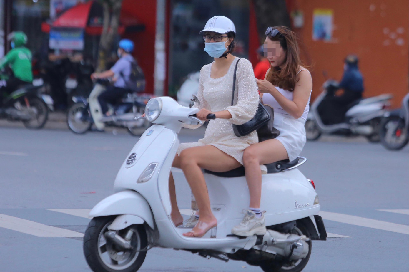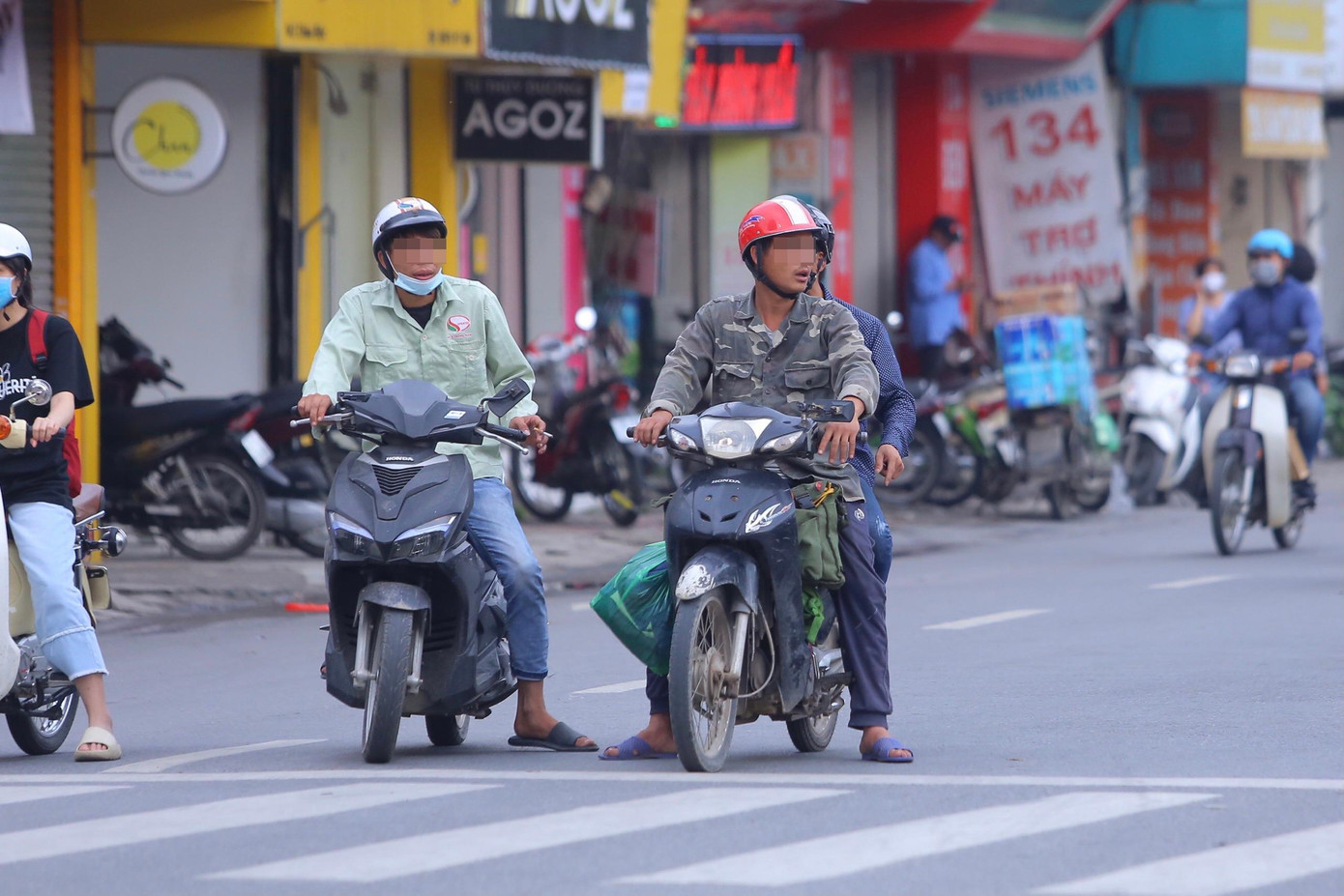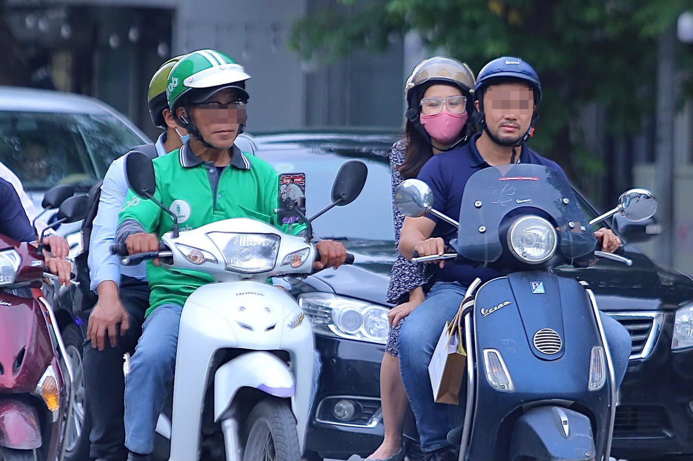 | Nhiều người không đeo khẩu trang tham gia giao thông khu vực ngã tư Thái Hà - Tây Sơn. Ảnh: Duy Phạm |