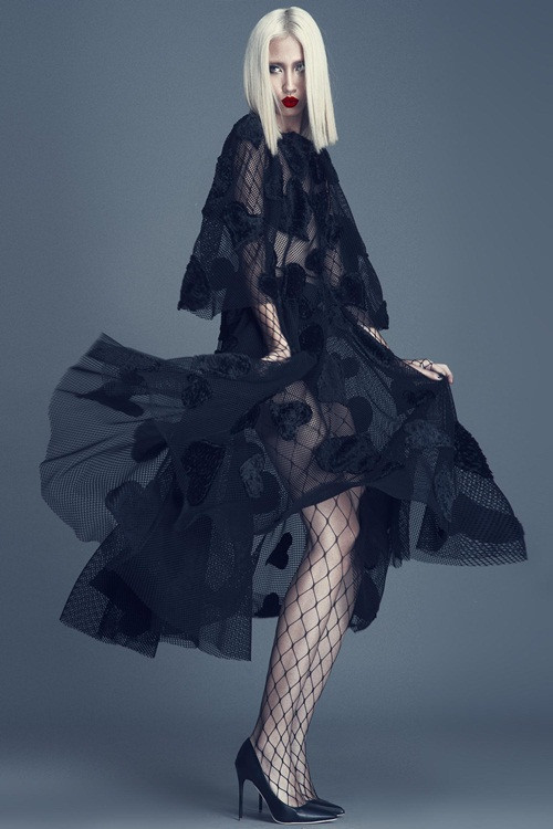 Người mẫu sinh năm 1991 gợi cảm trong chiếc đầm xòe vải voan, lưới đính trái tim.