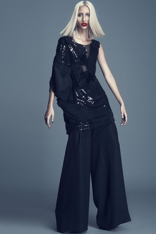 Bên cạnh nét tối giản thanh lịch thường thấy, những chiếc quần ống loe kinh điển được kết hợp với áo rộng, đem tới tinh thần tự do, hoang dã.
