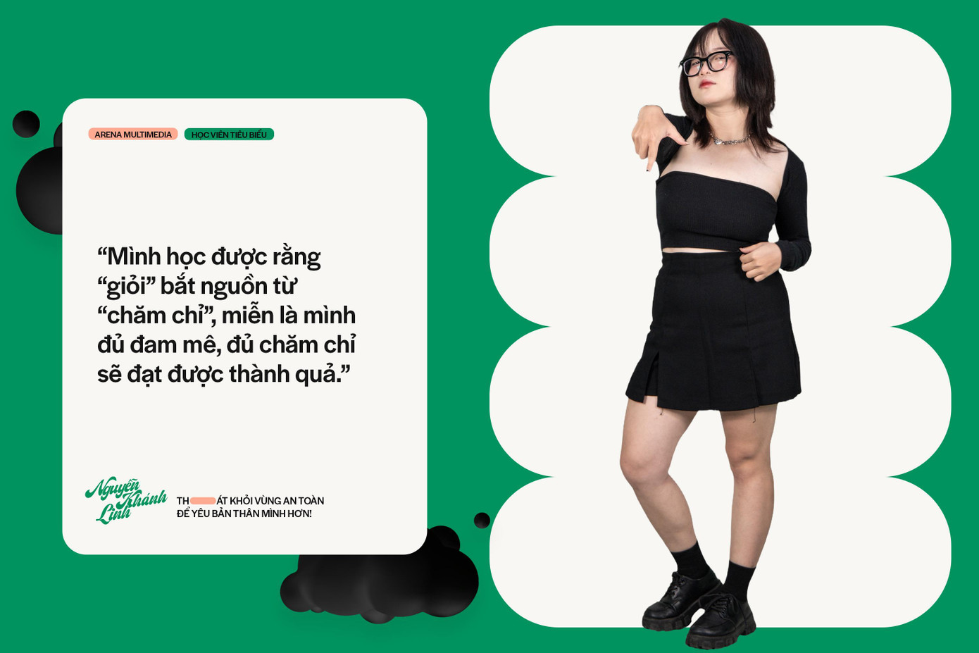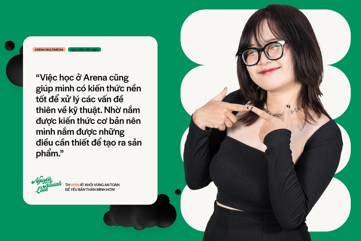 Biết đến rồi nhập học Arena Multimedia một cách khá tình cờ, Nguyễn Khánh Linh cũng không ngờ rằng 3 năm ở đây lại giúp cô thay đổi hoàn toàn, từ một cô bé mang nhiều mặc cảm tự ti và không chú tâm học tập trở thành một nhà sáng tạo bản lĩnh, chuyên nghiệp cả về kỹ thuật lẫn quản lý nhân sự. Nhìn lại một chặng đường nhiều cảm xúc, Khánh Linh không khỏi bất ngờ và tự hào về những gì mình đã trải qua.