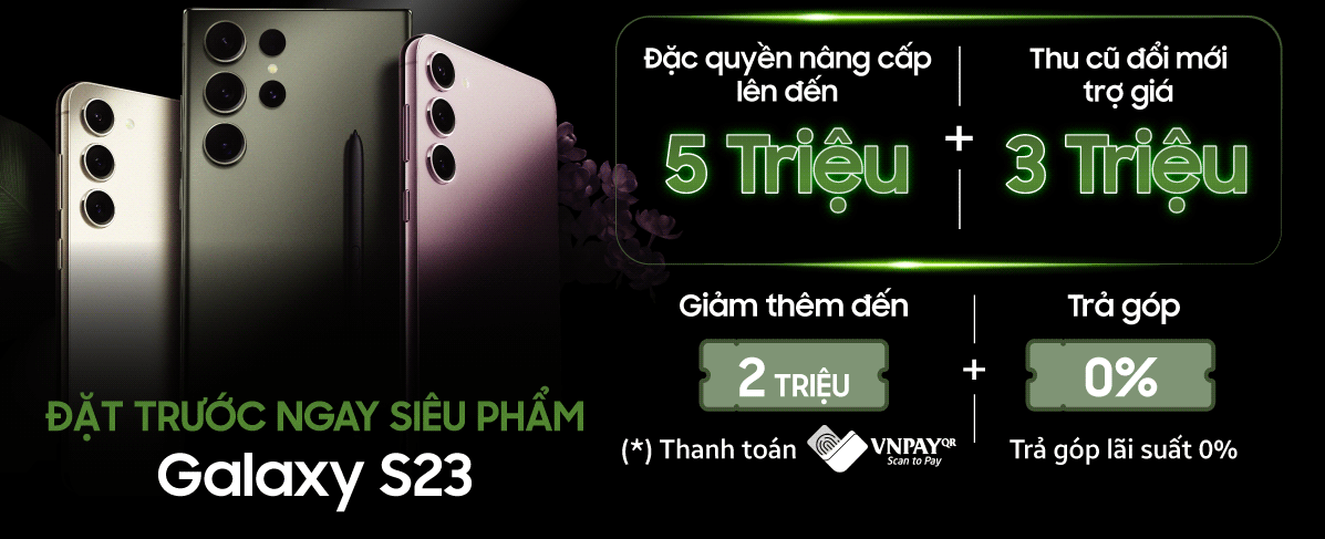 • Nâng cấp đặc quyền tới 5.000.000 đồng (giảm giá trực tiếp trên đơn hàng) khi đặt trước Samsung S23 tại Nguyễn Kim