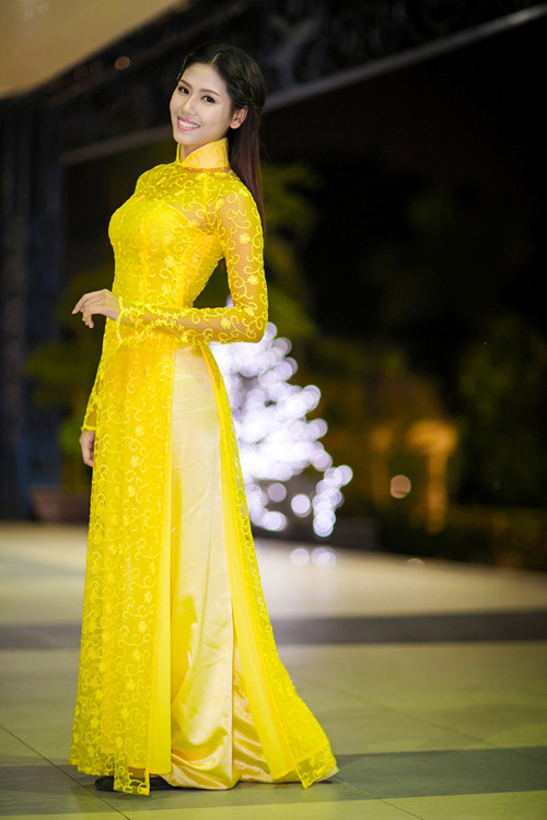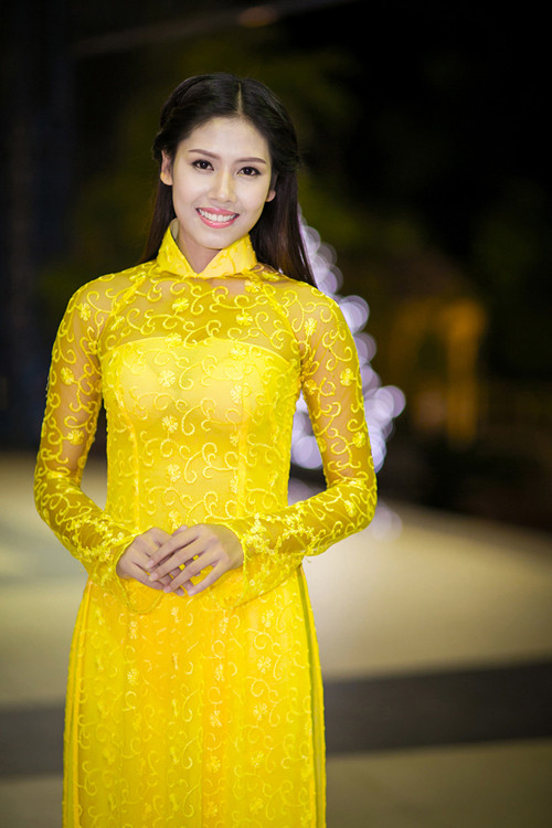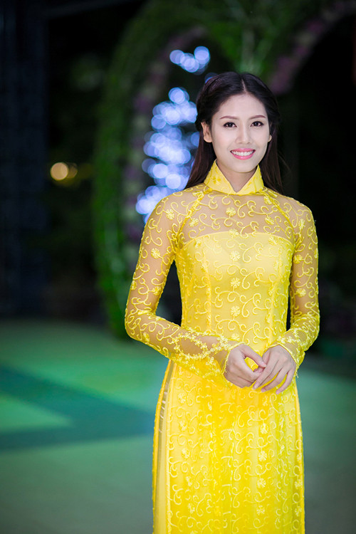 Cuối tuần qua, Nguyễn Thị Loan rạng ngời xuất hiện tại chương trình "Góp gạch xây trường em" tổ chức tại Nhà hát ngoài trời Cung Xuân Hà Nội. Diện bộ áo dài màu vàng rực rỡ với phần ren mỏng quyến rũ, Nguyễn Thị Loan nổi bật trên hàng ghế của sự kiện với vai trò đại sứ.