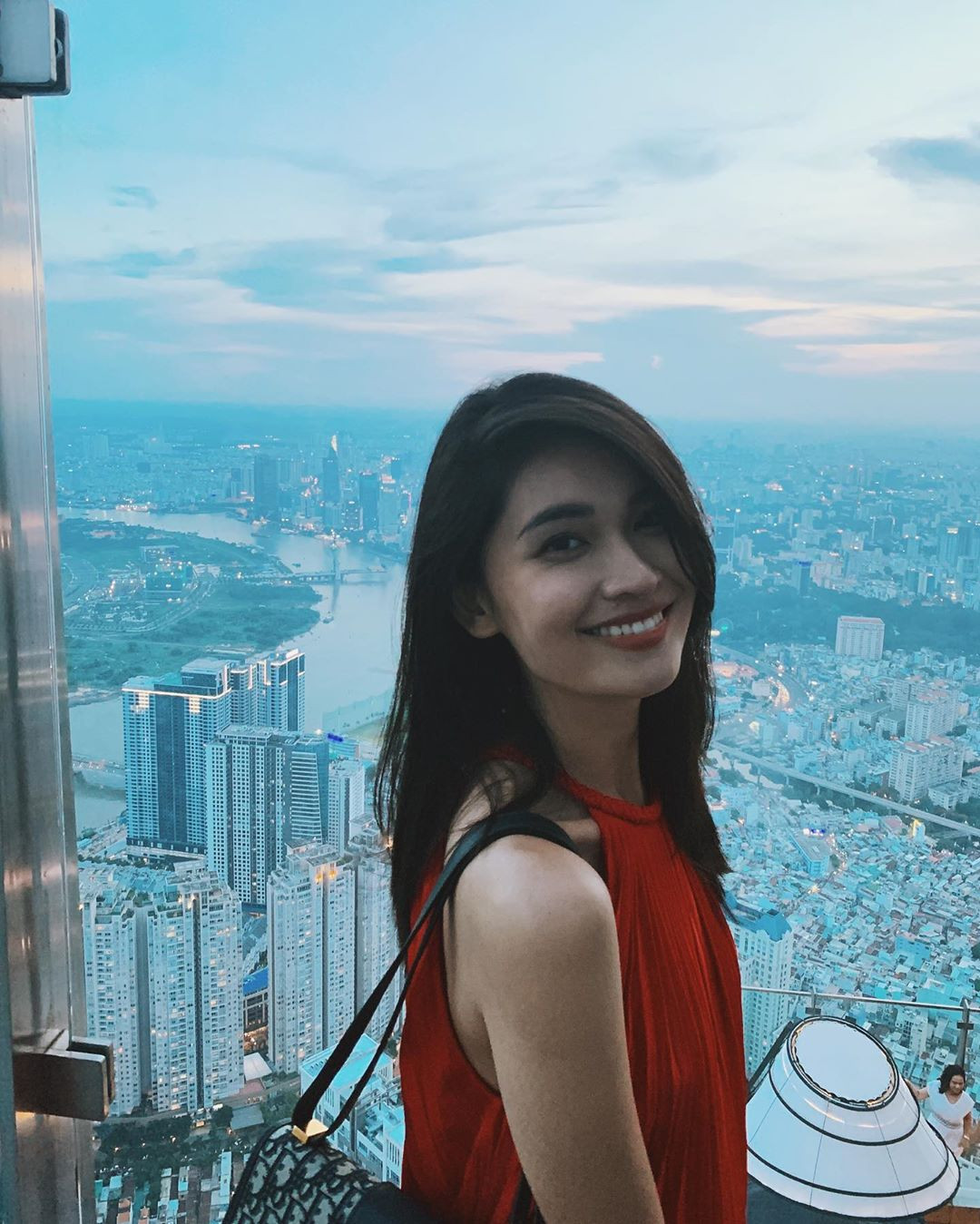 Á hậu Thuỳ Dung tận hưởng khung cảnh tuyệt đẹp của Sài Gòn từ trên toà nhà cao nhất Việt Nam.