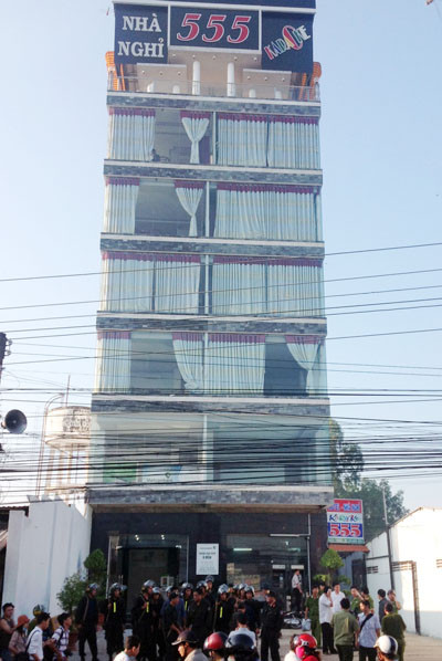 Nhà nghỉ nơi Phúc xả súng vào lực lượng bao vây. Ảnh: Hưng Phong.