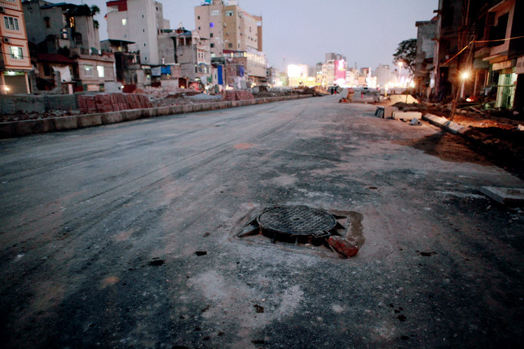 | Mặt trước ngôi nhà là đường đê La Thành, mặt sau là đường vành đai 1. Các hộ dân 2 bên đã được di dời sau giải phóng mặt bằng.. |
