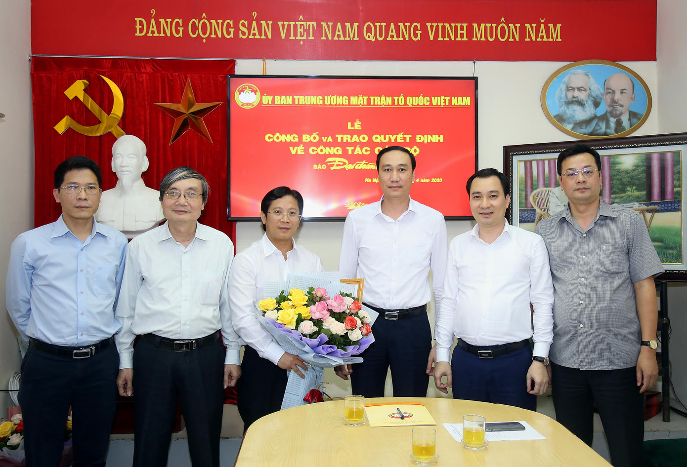 Thay mặt Ban Thường trực UBTƯ MTTQ Việt Nam, Phó Chủ tịch Phùng Khánh Tài đã trao quyết định và chúc mừng nhà báo Lê Anh Đạt, đồng thời mong muốn tân Phó Tổng Biên tập nhanh chóng tiếp cận công việc ở Báo Đại Đoàn Kết, cùng tập thể đơn vị hoàn thành tốt nhiệm vụ, nâng cao hơn nữa chất lượng tờ báo là cơ quan Trung ương của MTTQ Việt Nam.