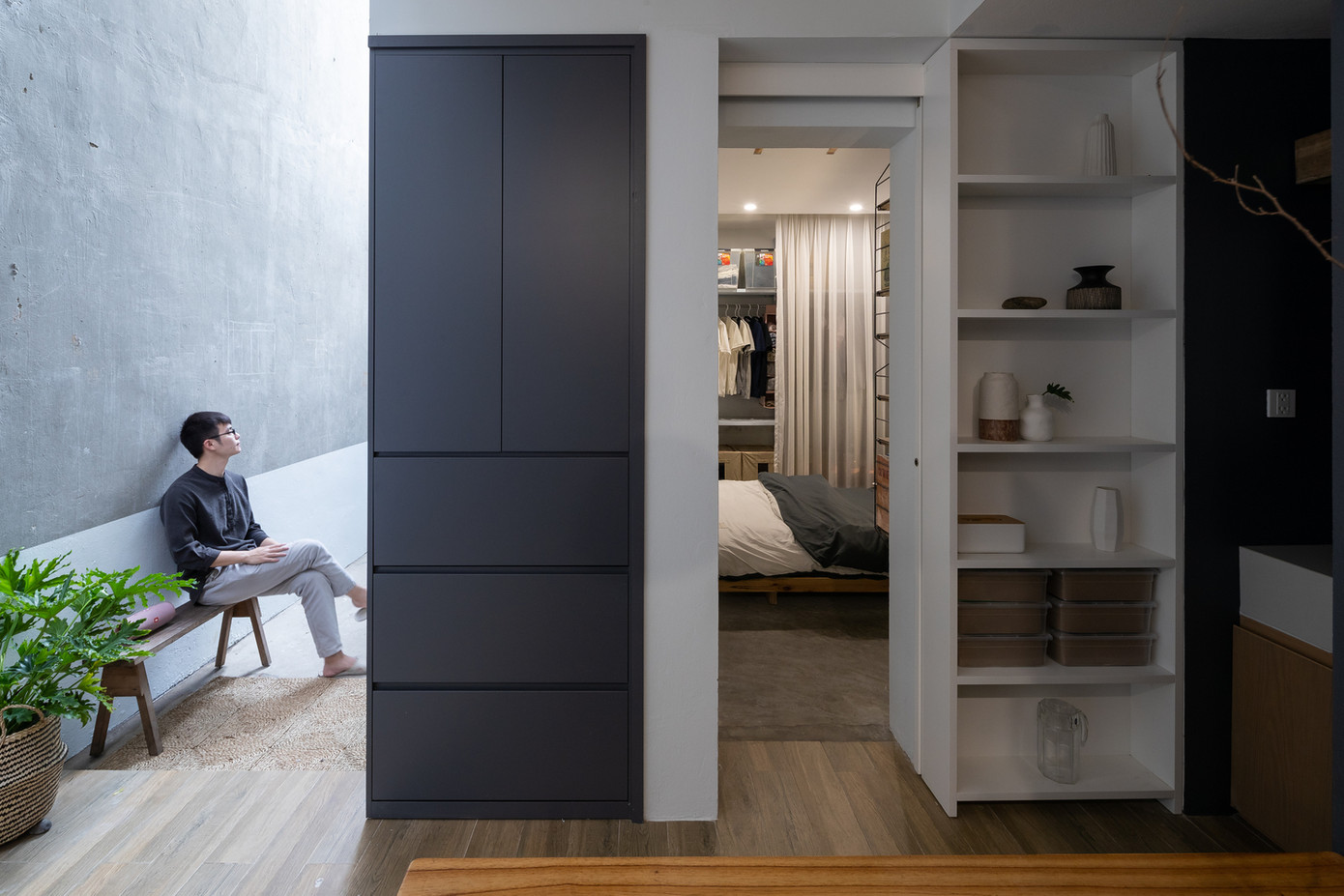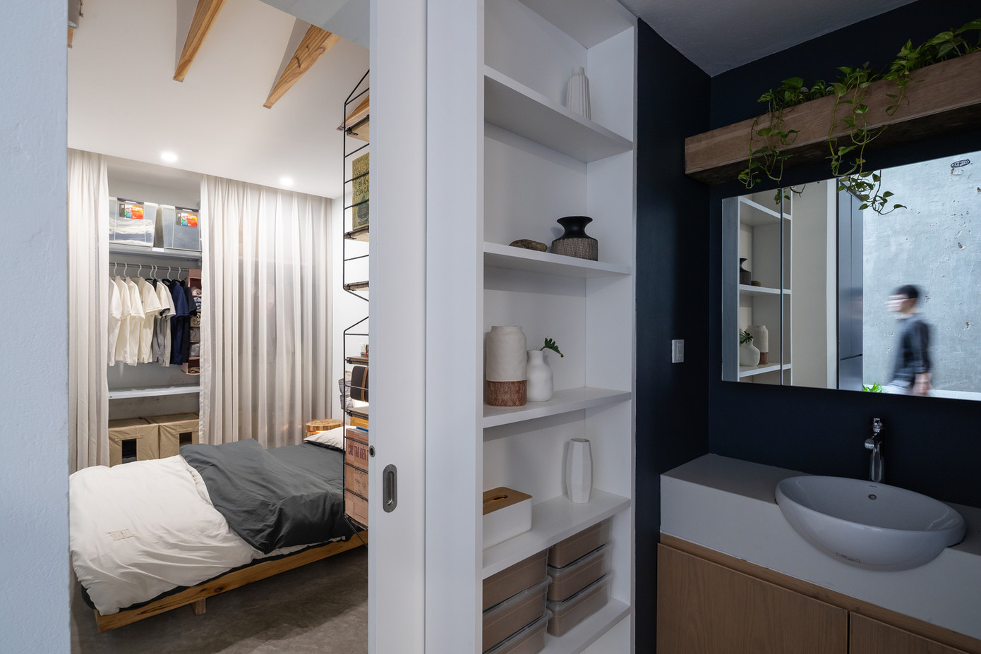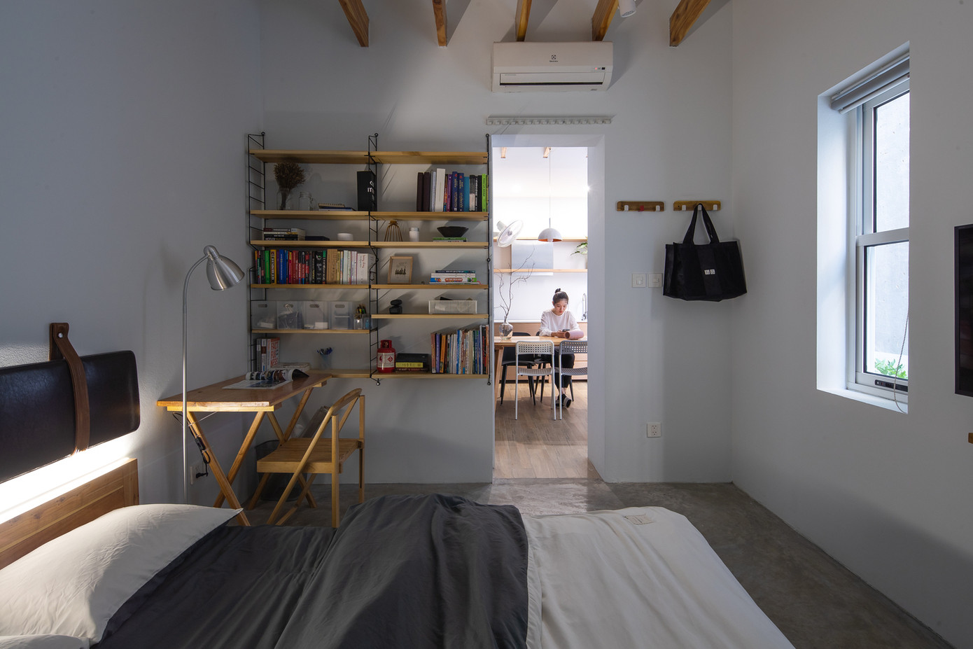 Ngôi nhà vốn đã bỏ hoang từ lâu nên phần kết cấu không còn được như mới, KTS đưa ra giải pháp cải tạo tập trung khai thác không gian, ánh sáng và sử dụng các vật liệu có tính nhẹ nhưng đủ kiên cố, an toàn cho gia chủ độc thân.