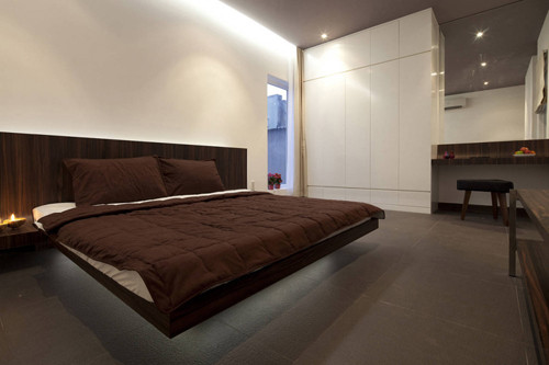 Phòng ngủ vợ chồng được lấy tông trầm kiêu xa.