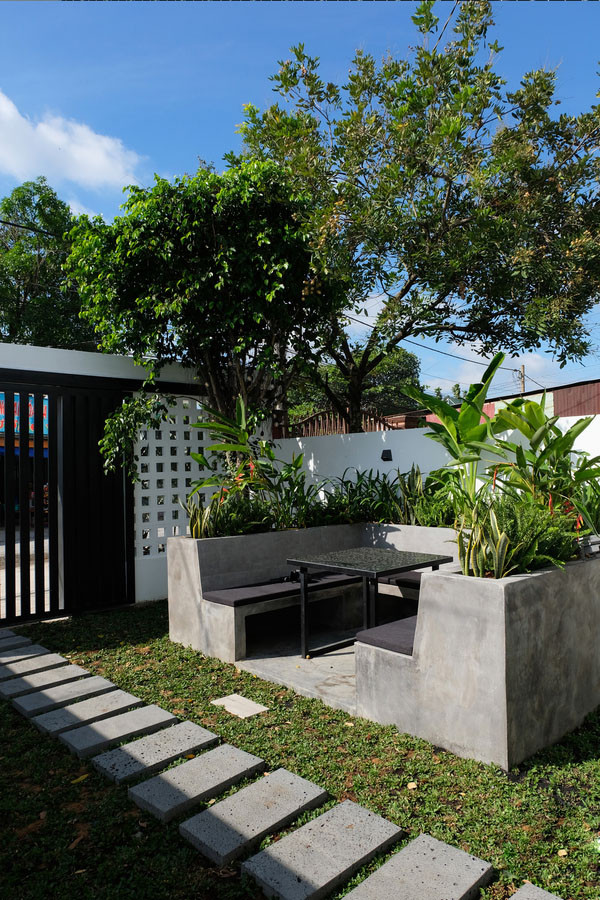 Truyền thống ở Việt Nam, các gia đình khi có tiệc hay lễ, ngoài bếp còn cần có một không gian rộng hơn để chế biến rộng rãi nên kiến trúc sư cũng chừa thêm một khoảng trống trong nhà để đáp ứng nhu cầu của khách.