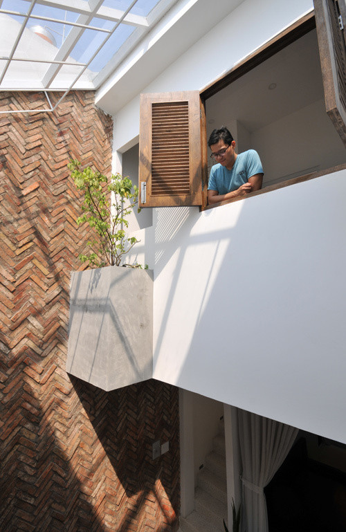 Ngôi nhà được thiết kế khoảng thông tầng thích hợp giúp ánh sáng và gió tự nhiên chan hòa khắp nơi.
